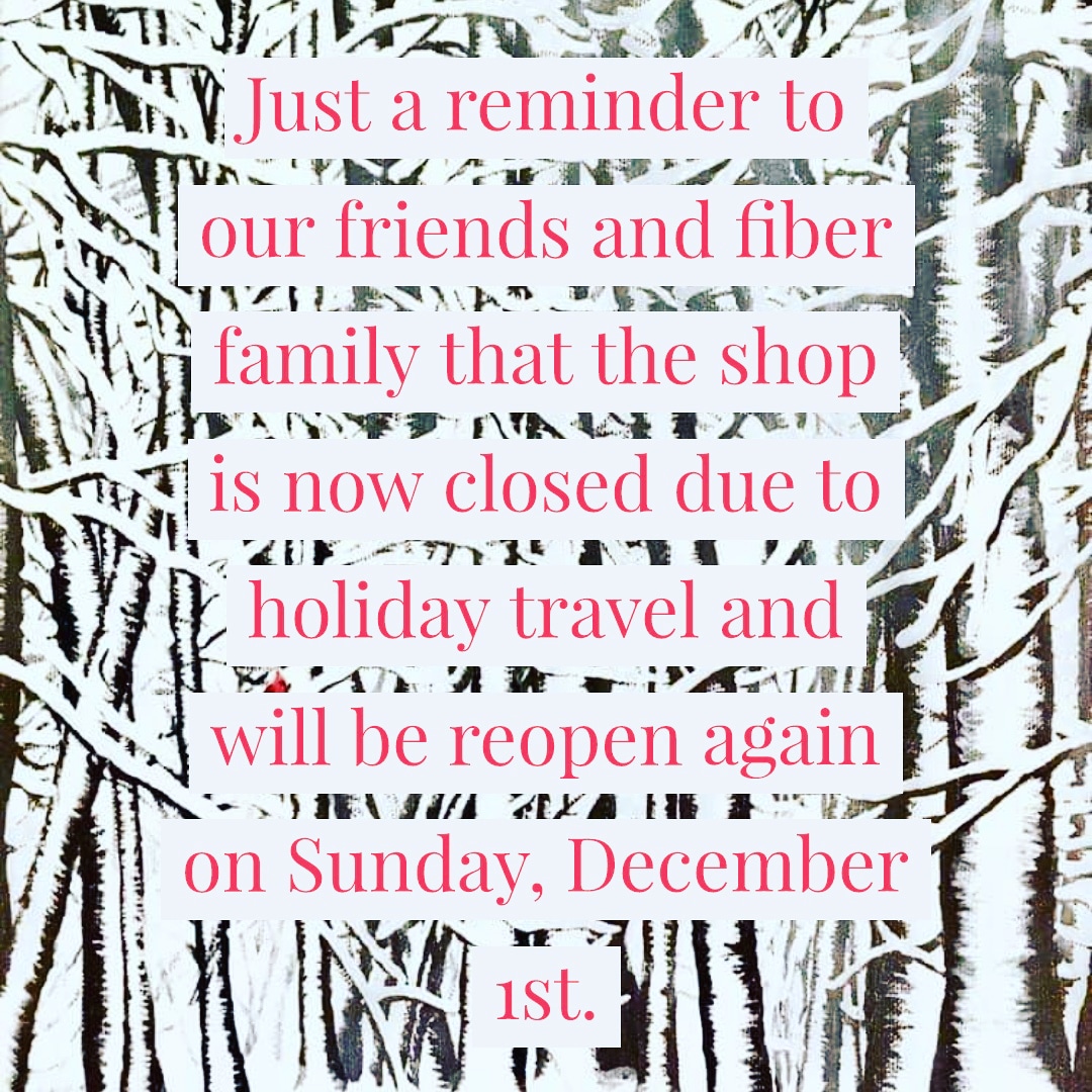 Shop Updates Shop Closed for the Holiday Week Posted by Strawberry Hill Fiber Studio on November 25, 2019November 25, 2019 Share this: Click to share on X (Opens in new window) X Click to share on Facebook (Opens in new window) Facebook Like Loading...